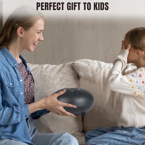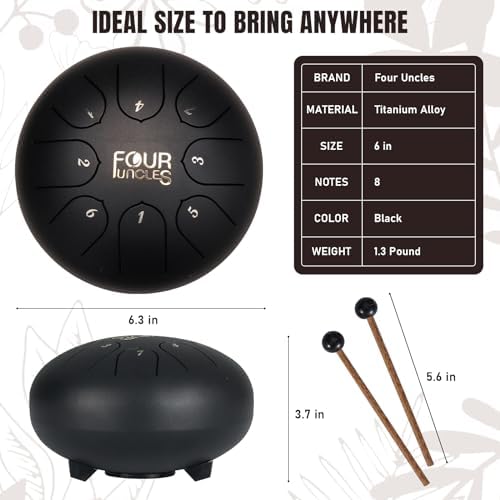 FOUR UNCLES Steel Tongue Drum 6 Inch 8 Notes Hand Pan Drums with Travel Bag Sticks Music Book Mallets, C Major Musical Instruments for Entertainment Meditation Yoga Zen Gifts (Black)