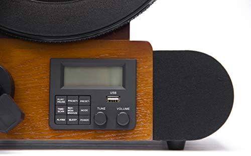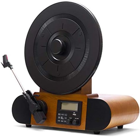 Fuse Vert Vertical Vinyl Record Player with Bluetooth, FM Radio, Alarm – Handcrafted Ashtree Wood
