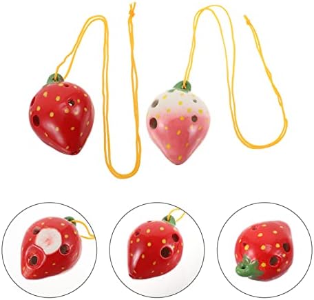 Generic Beginner Ocarina 2 Sets Fruit Shaped Ocarinas, 6- hole Music Beginner Ocarinas Lovely Wind Instruments Practice with Hanging Rope Strawberry Ceramic Ocarina