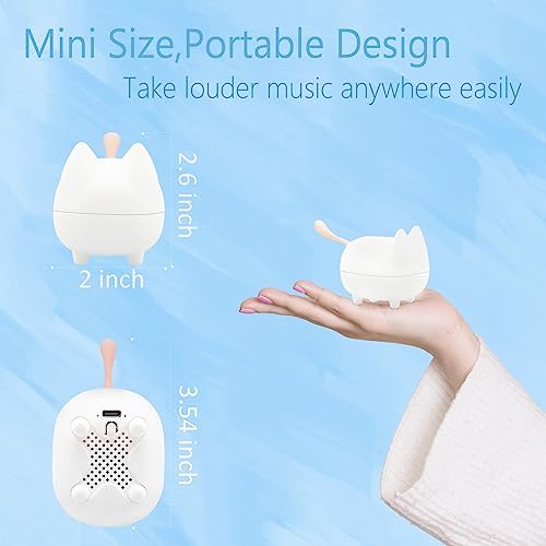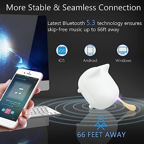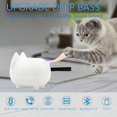 gingo Cute Bluetooth Speaker, Mini Portable Wireless Cat Speakers with Clarity Stereo, TWS Pairing, BT5.3,40H Playtime, Built-in Mic, Super Bass, Small Animal Bluetooth Speaker Subwoofer (White)