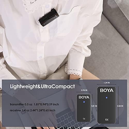 【𝗟𝗶𝗴𝗵𝘁𝘄𝗲𝗶𝗴𝗵𝘁 & 𝗨𝗹𝘁𝗿𝗮 𝗖𝗼𝗺𝗽𝗮𝗰𝘁】The TX transmitter and receiver weight is 0.5 oz and 1.4 oz respectively, and the size is 1.81*0.94*0.59 inch and 2.44*1.24*0.65 inch, it can be worn directly on the collar for live streaming, interviews, YouTube, Tiktok, etc or put in the pocket or bags for travel.