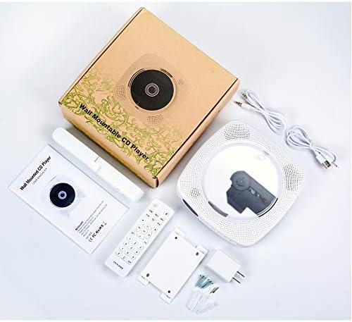 Package Included: Package includes 8 accessories: CD player, 5V-2A USB adaptor, Remote control, Wall-mount kit, Wall-mount plate, User manual, Desk stand, 3.5mm male-to-male audio cable