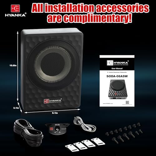 Maximize your car audio experience with the HYANKA 400W 8 Inch Compact Underseat Subwoofer. Packed with advanced tech and premium materials, it ensures top-notch sound quality. Elevate your drive with confidence, knowing it meets the highest standards for quality and performance.