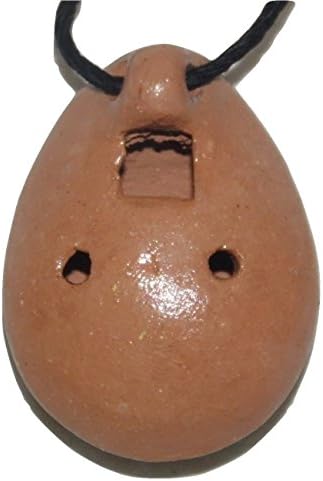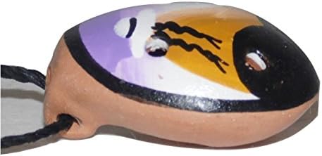 Handmade & handpainted Peruvian Ocarina with chord included. Measurements: 1,18 h x 1,02 w inches Chord: 12 inches The ocarina is an ancient flute like wind instrument . Variations do exist, but a typical ocarina is an enclosed space with 06 finger holes and a mouthpiece that projects from the body. It is made with ceramic, and handpainted for Peruvian Artisans. Lovely painted design and traditional string for wearing around neck
