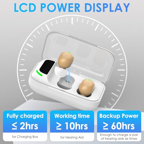 【Hearing Aid Rechargeable】It is a USB rechargeable hearing aid that can be placed in a portable base with power display for wireless charging, eliminating the need for frequent battery replacement. Hearing aids for the elderly can be quickly charged in 2-3 hours to fully charge the charging box, providing a total of 50-60 hours of use for the hearing aid; this is a perfect all-day hearing aid.