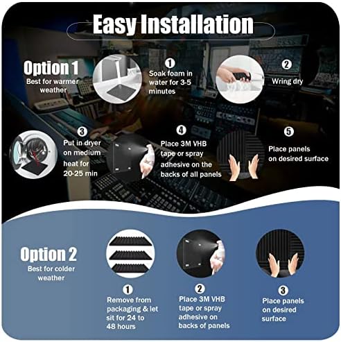 【Portable and Easy to Install】This sound proof panels for walls size 1× 12×12 inch, which are lightweight and convenient to carry. Our sound absorbing panels are easy to install and use, just imply attach it with stacks, nails, screws, stacks or glue.