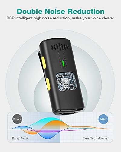 [Intelligent Noise Reduction] Holyask k10 lavalier microphone is a new generation microphone for iphone & ipad, this wireless microphone can be used for video recording, its cutting-edge DSP noise reduction chip effectively eliminates ambient noise, making the video sound clear and clean.