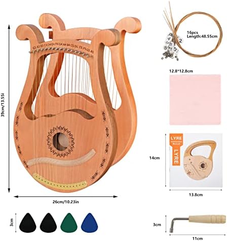 🎼 Completely Packaged with APP Tuning Support: The whole kit provides everything you need, such as a black lyre bag, 16 spare strings, tuning wrench, picks, and we provide tuning app support for the difficult points of multi-string tuning, Easier to adjust pitch. More suitable for your needs to carry music with you or store at home.
