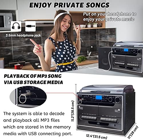 【Recoding from Tape/Radio/CD/Turntable】-Records your music on cassette from: cassette, turntable, CD, Radio, AUX in. Convert vinyl to MP3 format without a computer. The record player with remote control make all your operation easier. Also encoding of CD, Phono or cassette tape into MP3 file.