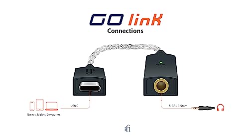 iFi GO link – DAC & Amplifier – USB-C to 3.5mm Adapter – Improve Headphone Sound from any Device – Gold-plated 3.5mm Headphone Socket – Flexible Cable – Supports Hi-Resolution 32-bit/384kHz/DSD256/MQA