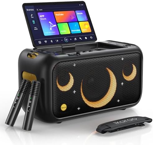 Ikarao 2024 Smart Karaoke Machine for Adults – with Foldable 64GB Tablet, 2 Self Charging Karaoke Microphone, 800W Bluetooth Speaker, 9 Playback Modes,Professional Karaoke Speaker for Any Occasion