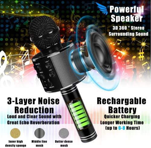 iUse Wireless Bluetooth Karaoke Microphone, Portable Handheld Rechargeable Karaoke Toy Speaker 3 in 1 Portable Mic Speaker Music Player for Home, Party, Birthday Gifts