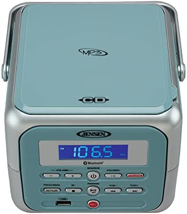Jensen CD-660 Portable Stereo CD Player Boombox with Bluetooth | FM Radio | USB | Aux-in Headphone Jack | CD-R/RW MP3 Playback | (Stone Blue)