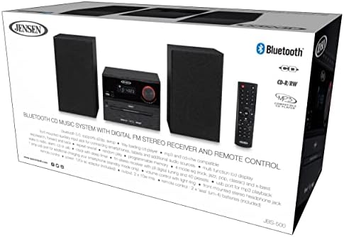 Jensen Professional JBS-500 Modern Bluetooth Wireless Stereo Music System Home CD Player, MP3 USB, Audio in, Headphone Jack, FM Radio, 30W – (Jet Black)