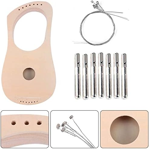 Jiayouy Lyre Harp 7 String DIY Kit Make Your Own Lyre Harp Kit with 7 Metal String Saddle pillar Tuning Wrench and Black Carrying Bag for Kids Adults and Beginners (7 String Basswood)