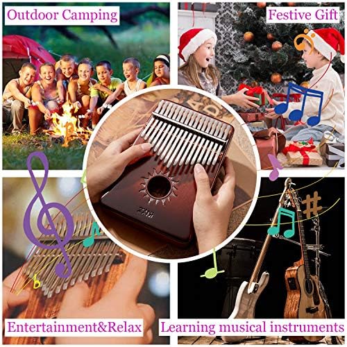 Kalimba Thumb Piano 17 Key with Engraved Notes Handhold Cute Finger Piano Portable Musical Instrument with Music Book for Kids Adult Beginner (Gradual Coffee)