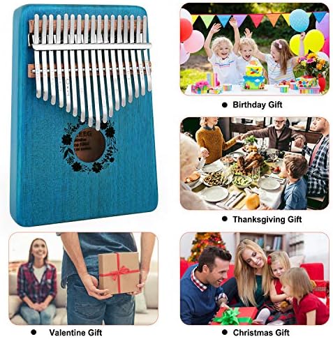 Kalimba Thumb Piano 17 Keys, Portable Mbira Finger Piano Gifts for Kids and Adults Beginners, Easy to Learn Finger Piano Music, Ocean Blue