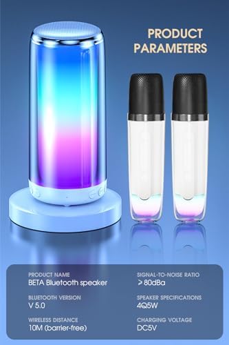 ♪【Warm Tips】TIP 1:Please tear off the protection blue film on the side of the Bluetooth speaker after receiving it. TIP 2: In order to have a better karaoke experience, the microphone and karaoke machine should not be too far away from each other. TIP 3 The microphone picks up sound very sensitive, i