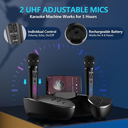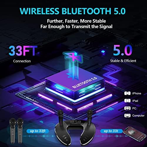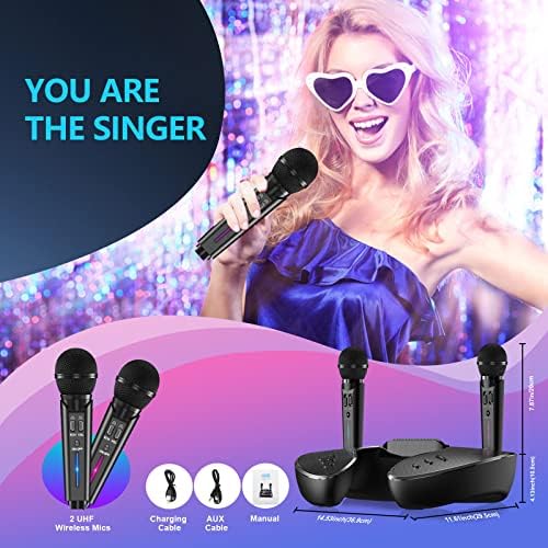 Karaoke Machine, DuxuOui Portable PA Speaker System Bluetooth 5.0 with 2 UHF Wireless Microphones, Rechargeable Speaker ST-2020 0