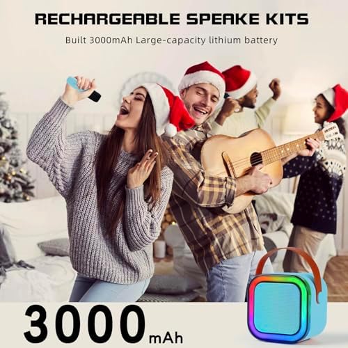 【Long Battery Life, Enjoy the Music】This Karaoke speaker for kids adults built-in a 3000mAh high-efficiency Li-ion battery, which guarantees non-stop music playing up to 5-8hours of playtime. Don’t worry about,you can enjoy your favorite Music.