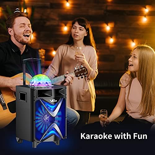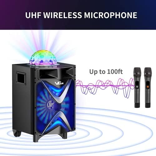 Karaoke Machine for Adults & Kids, VeGue Bluetooth PA Speaker System with 2 Wireless Microphones, Disco Ball, 10” Subwoofer, Karaoke Singing Machine for Home Karaoke, Singing Party, Church (VS-1088)