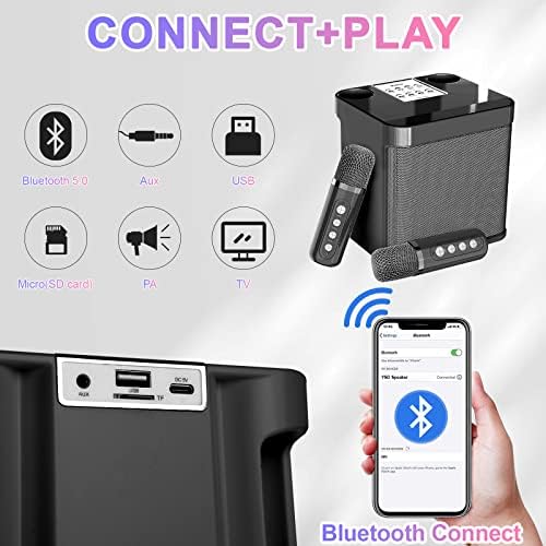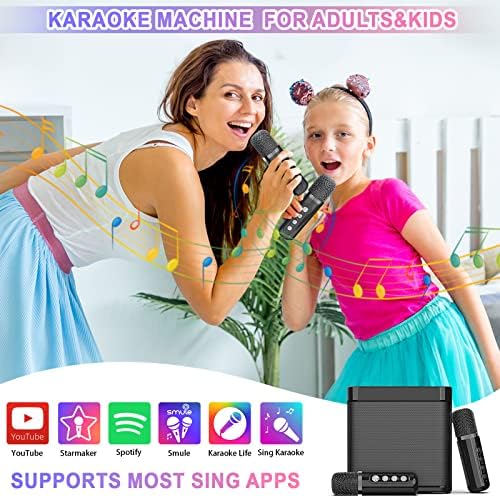 Karaoke Machine with 2 Microphones,Karaoke Machine for Adults and Kids,Portable Mini Karaoke Speaker PA System,Support Bluetooth/USB/AUX/TF, Karaoke Kit for TV,Home Party, Meeting,Outdoor (Black)