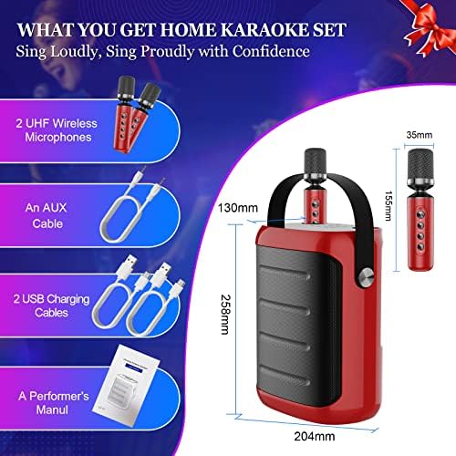 Portable Karaoke Machine for Adults Kids with 2 UHF Wireless Microphones