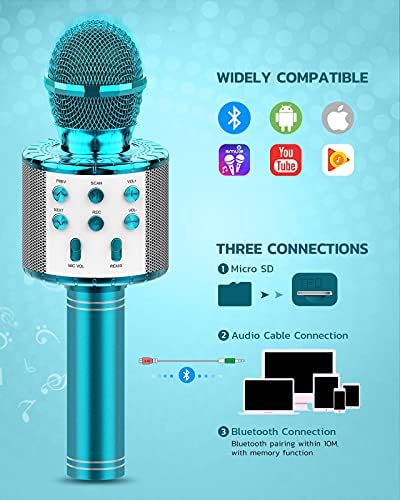 Karaoke Microphone for Kids, Wireless Bluetooth Portable Handheld Karaoke, Adults Speaker Machine Loud with LED Light, Car Singing Home KTV