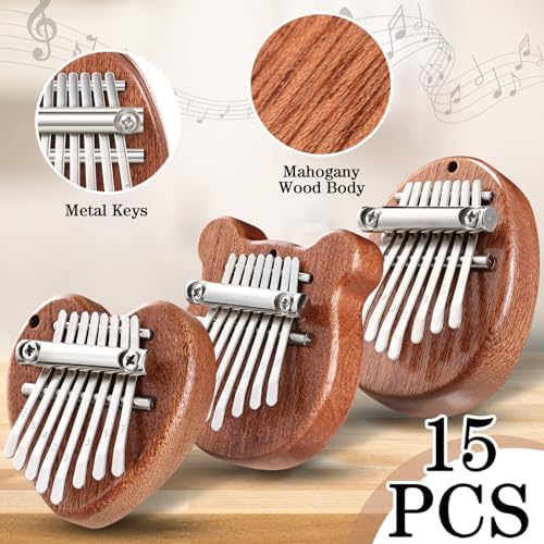 Kathfly 15 Pack Mini Thumb Piano with 8 Key Cute Heart Oval Bear Kalimba Mini Hand Piano Finger Piano Pocket Kalimba for Kid Adult Valentine’s Day Christmas Musical Gifts