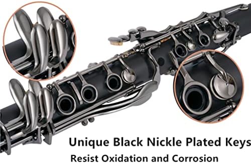 π΅β« HIGH-QUALITY CLARINET β High-level bakelite body brings focused and clear tone. Robust contoured carrying case for quick and easy transportation.The bell made only of solid bakelite results in a lighter instrument with improved response.