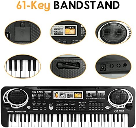 【Multi-Function 61 Key Piano】The 61-key electronic keyboard includes 16 tones,8 percussions,6 demos,5 melodies,song record and play function. You can customize the sound of the music keyboard and connect the microphone to sing your favorite songs.