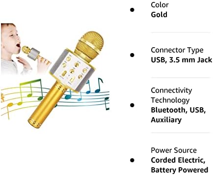 KIDWILL Wireless Bluetooth Karaoke Microphone for Kids, 5-in-1 Portable Handheld Karaoke Mic Speaker Player Recorder with Adjustable Remix FM Radio for Kids Girls Boys Teens Birthday (Gold)