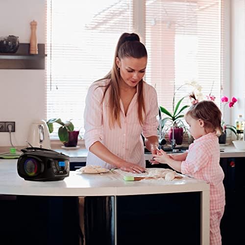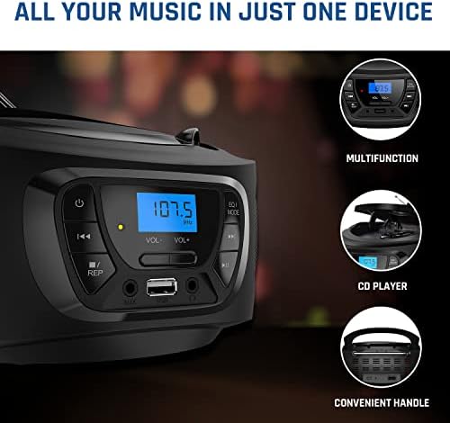 ✅ IMPROVED CD LENS + COMPATIBLE WITH MOST AUDIO FORMATS. With most things digital nowadays, it’s refreshing to be able to enjoy your old collection of CDs and experience great audio quality without any of the digital compression. The Boombox plays normal compact discs as well as many types of CD and audio formats: CD Audio, CD-R, CD-RW, MP3, WMA, etc. ⚠️ IMPORTANT: REMOVE THE PROTECTIVE CARDBOARD ON THE LENS BEFORE INSERTING A CD.
