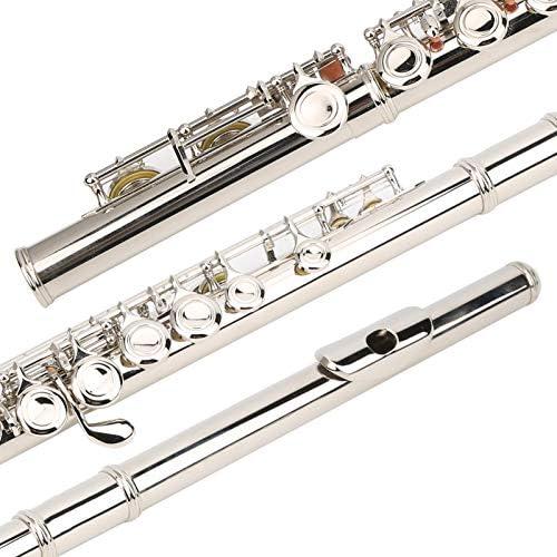 LADE 16 Hole C Flute Closed Key with Storage Bag Increased Tube Resonance Musical Instrument Brass 16 Key Flute Beginner(silver)