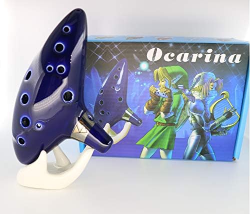 Legend of Zelda Ocarina of Time, 12 Hole Ocarina Alto C w/Song Book, Display Stand, Protective Bag, Cord, Blue