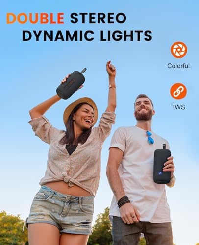 LENRUE Bluetooth Speaker, Wireless Portable Speaker with Crisp Sound, Dynamic Lights, IPX5 Waterproof, TWS Pairing, Type C Charge, Suitable for Indoors, Outdoors, Parties, Gifts