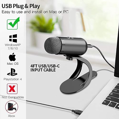 ♫【Wide Application & One Key Mute】USB computer microphone perfect compatible with Windows, Mac OS, PS4, Desktop Mic, Laptop, and All-in-one PC. Unique design on one key mute, you can use this function when you need in different application.