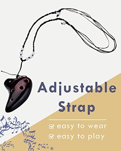 L’MS 6 Hole Ceramic Strawfire Mini Ocarina Legend of Zelda Triforce Design with Free Tutorial Songbook (Coffee)