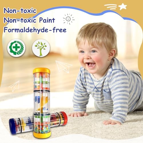 【EASY TO GRIP】It’s a great baby musical toys for 3 year old,our baby can grip the rain tube easily, developing their grabbing abilities as they play.