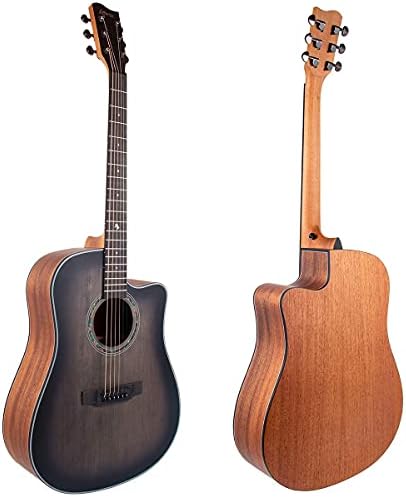 COMFORT TOUCH—-Inserted smooth fretboard, you will feel always comfortable and smooth when playing this cutaway acoustic guitar, without scratching your hand.The strings are soft and smooth to touch with a very clear, sweet sound.