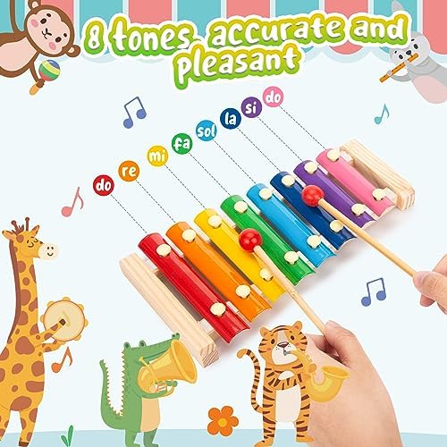 Accurate Tuning – Crafted with 8 accurately tuned, brightly colored keys, this xylophone hones rhythm and music skills. this mini xylophone visually aids learning through colors and offers diverse sounds.