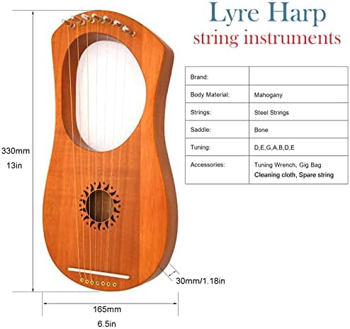 Lyre Harp 7 String, 7 Metal Strings Lye Harp Bone Saddle Mahogany with Tuning Wrench and Black Gig Bag.