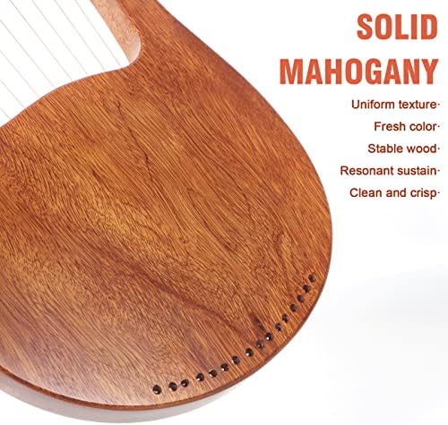 【MAHOGANY LYRE HARP】AKLOT lyre harp carved from a piece of Mahogany with maple saddle , high hardness and density wood is strong enough to keep it in tone, the metal end loop avoids the string force into the wood. The instrument is warm voiced with a pleasant tone.