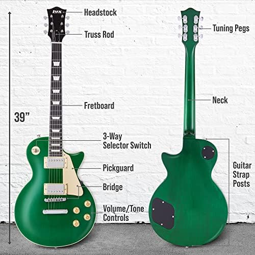 LyxPro 39” SB Series Electric Guitar, LP Style for Beginner, Intermediate & Pro Players Solid Body Guitar, Bonus 2-Pack of Picks, Mahogany Wood, Volume/Tone Controls, 3-Way Pickup – Green
