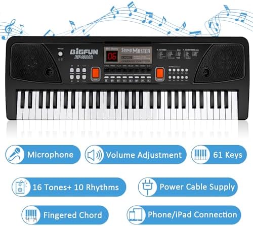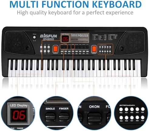 M SANMERSEN Piano for Kids with Microphone, Keyboard Piano for Beginners Electronic Keyboard 61 Keys with Dual Speakers/LED Display/AUX-in Jack/Music Stand Piano Toys for Boys Girls Ages 3-12