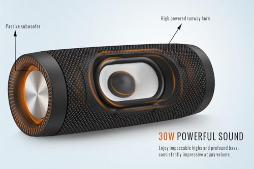 Immersive Sound, Extended Playtime — Experience rich audio with a 30W Bluetooth speaker, offering impressive sound quality.