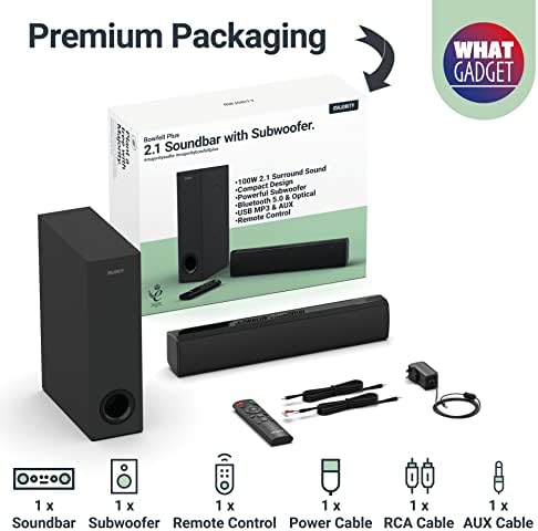 Majority Soundbar with Subwoofer for TV, 15 inch Bluetooth Sound Bar 100 Watts, Home Audio Speaker, Small TV and PC Soundbar | AUX, RCA, Optical, USB | Gaming, Music, Movies Bowfell Plus
