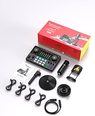 MAONO Audio Interface MaonoCaster 10-Channel Podcast mixer for Podcast Recording, Streaming, Youtube, TikTok, PC, Guitar (AME2A Christmas Gift Bundle)