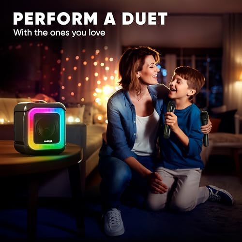 MASINGO Karaoke Machine for Kids and Adults with 2 Wireless Bluetooth Microphones, PA Portable Speaker Toy for Girls and Boys with Colorful LED Lights, Supports TF Card/USB, TWS for Home Party, C7
