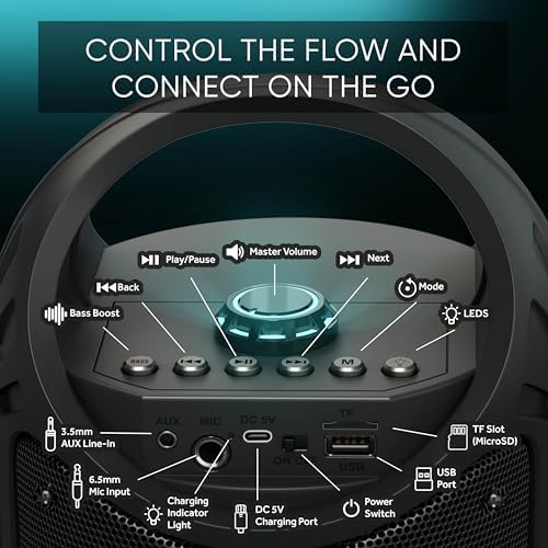 🎤 𝗙𝗘𝗔𝗧𝗨𝗥𝗘𝗦 𝗚𝗔𝗟𝗢𝗥𝗘 – 6 playback modes: Bluetooth, USB, AUX, FM radio, Micro-SD, or PA portable. Light up sound system features a color-shifting LED ring light. It’s a double dance and sing along with TWS; buy a second Burletta to pair your karaoke machines at the press of a button.